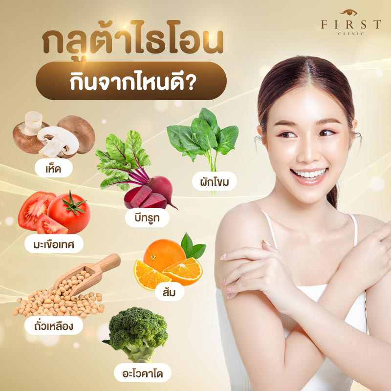 กลูต้าไธโอน เป็นสารที่เกิดจากอมิโนแอซิด 3 ตัวมาต่อกันนะครับ ตัวนี้จะมีผลในการยับยั้งส่วนของเอมไซม์ที่ใช้ผลิตเม็ดสีนะครับ เพราะฉะนั้นถ้าเรากินหรือฉีดเข้าไปก็จะทำให้ปริมาณเม็ดสีเมลานินเนี่ยลดน้อยลงนะครับ ก็การกระจายตัวของเม็ดสีก็จะน้อยลง ก็จะมีส่วนช่วยทำให้ดูสว่างกระจ่างในได้ในระดับหนึ่ง แต่ก็จะมีอยู่ในอาหารบางประเภท เช่น อะโวคาโด ผักโขม ถั่วเหลือง บีทรูท หรือ บล็อกโคลี่ แต่ถ้าใครไม่สะดวกอยากใช้การฉีดหรือกิน ก็แนะนำให้ศึกษาให้ละเอียดเพื่อความปลอดภัยสูงสุดครับ